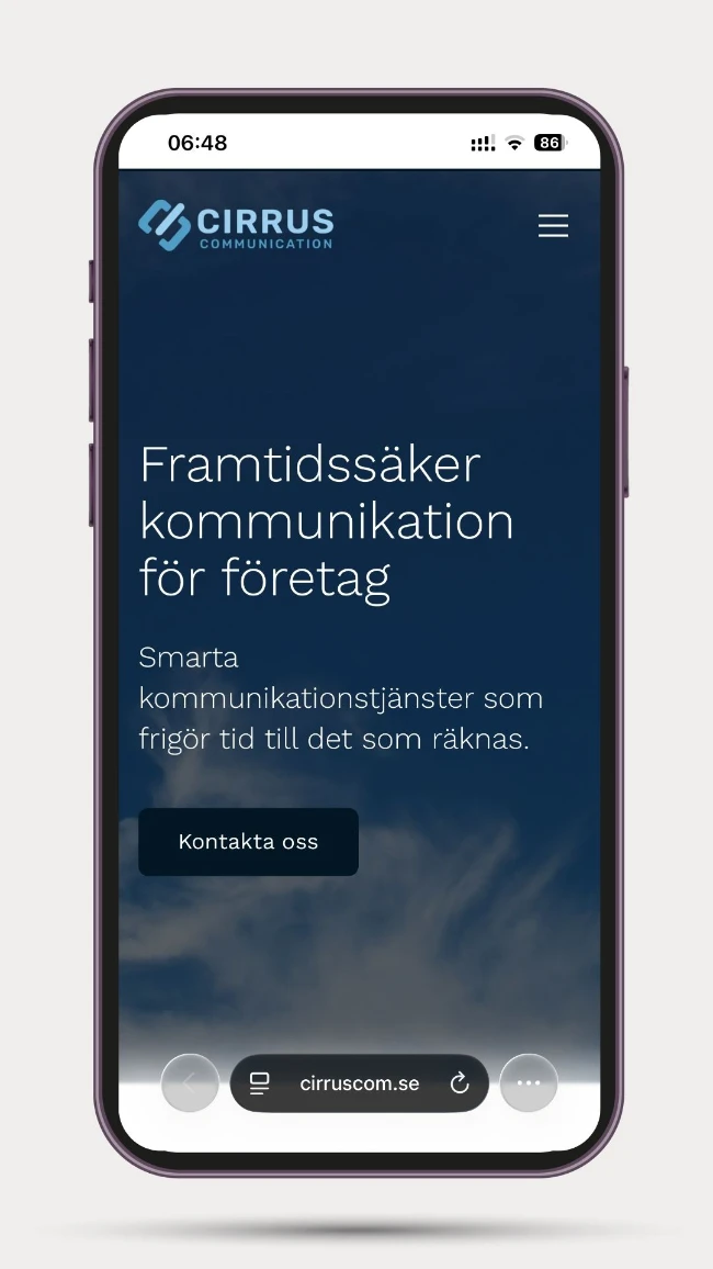 Det huvudsakliga målet med projektet var enkelt: skapa en uppfräschad, modern hemsida som tydligt presenterar företaget och dess erbjudanden, vilket gör det enkelt för kunder att lära sig om Cirrus Com och vad de kan köpa. Som en del av detta föreslog vi även uppdateringar för att förbättra prestanda, tillgänglighet och hållbarhet, men huvudfokus låg på att göra hemsidan till ett sant skyltfönster för verksamheten.